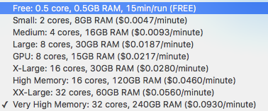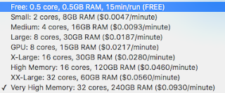 Costs seem to be well below internal costs. And my recommendation is that even for hobby projects involving only python, R and/or Julia one might want to consider whether pricing like the following is unreasonable when it obviates a great deal of messing around.